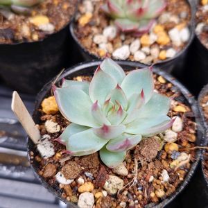 エケベリア オリジナル交配種 Echeveria OriginalHybrid おばんです🤗 朝はまだ寒いですね・・・😨 10℃って、2月の昼間並ですよ バイクに乗りながら 寒い、寒い、寒いを連呼してました😅 しかし昼間は過ごしやすく良いですね 走りやすいです🔆 この先、梅雨なので今の内にバイクに乗っておかない😉 さて、今宵はオリジナル交配種を。 爪が紫の良い交配種 これは気になるので青札です(笑) 成長したらどうなるんだろう?🤔 カッコよくなるかね🤩
