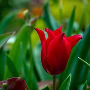 ☆︎*:;;;;;:*☆︎こんばんは☆︎*:;;;;;:*☆︎ いつもありがとうございます(*´∀`*)💕 🌷プリティーウーマン🌷 昨年掘り出した球根からの開花です❤️ 雨上がりに写したからうな垂れてしまいました💦 くびれも無くなっちゃった‹‹\(´ω` )/›› でも、パキッとした赤が華やかで可愛いです❤️❤️❤️