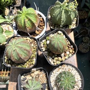 昼前から日中いっぱい雨予報☂️ 予想最高気温24℃ ユーフォルビアゾーン オベサ2株、シンメトリカ1株、バリダ1株は鉢のリサイズ(大きすぎたものは小さく、窮屈になってきたものは大きく)真夏に植え替えましたが、今の所問題なく来れてます🪴 てっぺんから葉を出してるものがチラホラあるのでのんびりと成長して下さいな🌿 しかし、オベサ系は可愛すぎる😂