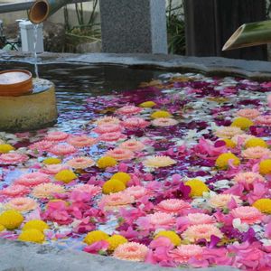 明けましておめでとうございます🎍 本年も宜しくお願い致します🙇 ①干支アート 毎年、地元の方達が、上手に制作されます💕 ②花手水 淡い色合いの菊が沢山浮かべられ、優しい気持ちになりました〜🤗 ③④神社の門松です💕