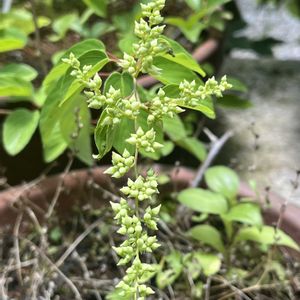 お庭の山野草… ヒトリシズカが咲いています♪ あちこちに出てきます😊 一人静 ⚫︎⚪︎⚪︎⚪︎