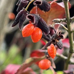 お庭より… ニシキギ(錦木)×2 ツルウメモドキ(蔓梅擬)×2 キミノセンリョウ(黄実千両) ⚫︎⚪︎⚪︎⚪︎⚪︎