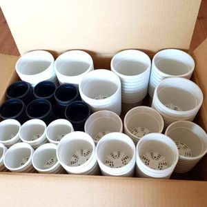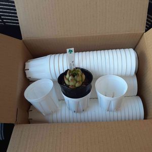 今まではプレステラと八角プラ鉢を使っていたけど、彼が使っている所沢植木鉢センターの丸いプラ鉢が良いって言うから、試しに60個づつ注文してみました☺︎ さて、植え替え始めますかね!!