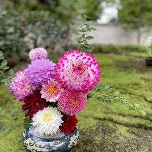 ダリアの花手水 上野東照宮ぼたん苑の秋のダリア展 美しいダリアの花手水✨✨✨✨✨ ①②③ダリアの花手水 ④ ももこさん ⑤ あおいちゃん 長かった猛暑の夏を越したダリア。 どんなふうに育てたら、こんなに美しくさくのだろうと驚いた。 種類も多く期待以上の満足感。 10周年のアニバーサリー、是非、足を運んで欲しいな。