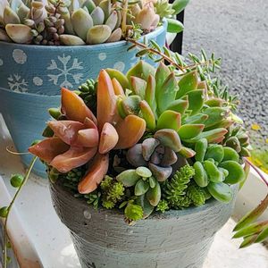 おはようございます.。+゜♪.。🩷 ここ最近短し秋ですが…😅今年に関しては秋が長いような気がします。(私の地域ですが🤭www) と・言う事で多肉さん達の植え替えがスタートしました。 極力植え替えか必要な分ですが 結構あります…😅 ダリアと菊は義理の母の花壇のものです。今年も綺麗に咲いてました🩷 5️⃣は寄せ植えに見えるけど、7cmポットです。皆デカベリアになっております(*ノω<*) アチャー
