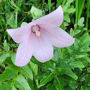 こんにちは♪ .•*¨*•.¸¸♬✧🩷 午前中はたっぷり病院でした。 本当にどこの病院もめちゃくちゃ混んでますね⤵️😢 疲れました。゚(゚´ω`゚)゚。 🌿今日のお花🌿キキョウ 皆さんのはワンサかと咲いて綺麗だけど家のは、1輪ずつ咲きますね…😅 ②白牡丹綺麗な白です。 ③玄海岩蓮華。冬枯れたと思って昨年は、外に出しっぱなしで雪の下でしたが、春になって復活しましたよ。捨てなくて良かったハハッ。 ④グリネ 半日陰の方がグリーンが濃いですね。 ⑤多分マジックジャムだとおもいますが…。昨年もレティジアだとずーっと思ってました(笑)