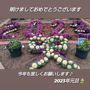 2023年、今年も変わらぬスタンスで😊 宜しくお願い致します。 (2022/11/23撮影 植えたばかりの葉牡丹の花文字) 今年も好きな事に全力投球の1年に‼️ 2024年のこの花壇(傾斜があります)の植え付け(デザインも🤔)は、私達😁(緑化リーダー上級コースに進級できたらの、たらばなし)🤣 来年の元旦も、投稿できますように💪。