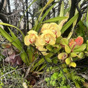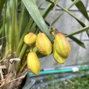 野生化した蘭にビックリ😳黄色が美しく発色して立派な咲っぷりです😍 何年も人が住んでいない建物の屋上に放置された大型プランターの中で咲いていました。 それも今は冬。夏は陽射しを遮るものも無い屋上で、水遣りもする人もいないのに、何故生き延びて花まで咲かせているのか?? びっくりを通り越して驚愕です😱