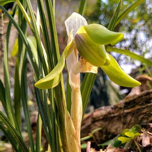 不明蘭が咲きました! これなんだろ? 咲いたところで、あなた誰!ってなってます😂 デンドロのギンキアナム? 思ったより小さくて笑ってしまった😂