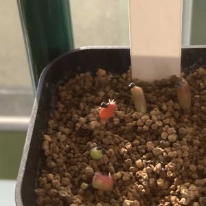 ゴジラっぽくならなくてゴジラを名乗れなかった亀甲牡丹錦のタネから生まれた子供たち。 この子たちはゴジラになれるかな😚 実生1ヶ月経過。 毛が生えてきた子がチラホラ。 種帽子まだ付いてる😁 それにしても赤い🔴 大丈夫かなぁ🥺