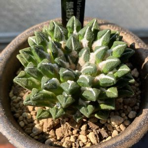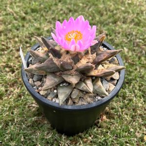 こんばんは〜😄 今日は暑いです🥵 夜になってもエアコンが切れません💦💦 明日は午後には雨が降るらしい☔ 早めに洗濯物干さなきゃ🧺 アリオカルプス ブラボアヌス❣️ 先週名古屋の樹祭に行って少し仲間を増やしましたが、サボテンをひとつも連れて来られなかった事が寂しくて今日近くまで行ったので少し足を伸ばして三河サボテン園さんへ 温室の中は暑かった〜🥵🥵 それでもいくつか可愛らしい子を頂いて帰りました💕💕 この子はゴツとフワがなんとも言えず魅力的 アリオカルプスはお花が綺麗ですが、いつかちゃんと咲かせられるように頑張ります🥰🥰