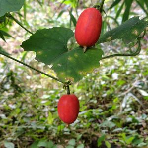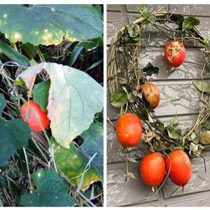 友と☕した帰り道 (。◔‸◔。)??ん?誰かが呼んでる、車窓から見えた赤い丸い実 車をUターンさせて戻って見たらやっぱり ˚*.꒰ カラスウリ ꒱.*˚ 今日のお花だったね ジャストなタイミング 会えて良かったよ 帰り道♩♫♩~ 𝄽♩♫♩~ 𝄽 童謡🍁まっかな秋🍁を口ずさみながらのドライブと成り候