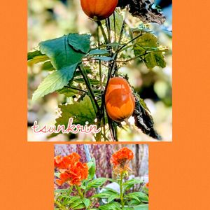 今日のお花 実家のカラスウリの実 ケイトウは、フラワー&ガーデンフェスティバルでミヨシ園芸さんでもらった種から育てたもの。小さいプランターに植えていたら、ぐんぐん伸びて、風でプランターがひっくり返ってしまったので、大きい丸型のプランターに植え替えました。花の少ない今の時期に、咲き続けてくれています😊 その後ろは、種採りして育てたコキア。