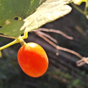 今日のお花 カラスウリ ウリ科カラスウリ属 つる性多年草 北海道、本州、四国、九州に自生する。 山野の林縁や藪などで草木にからみつく。日当たりの良い山道脇などにもよく見かける。 花期7〜9月 雌雄異株 レース状になって白い花が夕方から咲き、翌朝の日の出前にはしぼむ。 果期10〜11月 雌花が咲く雌株のみに果実を付ける。 直径5〜7cmの長楕円形で、丸いものもある。 熟す前は縦の線がある緑色で、熟すとオレンジ色や朱色になる。 ⑤蕾と花(雄花)と花後(翌日の様子) 7/25.26 撮影 ④緑色の果実 8/14 8/24 撮影 ③オレンジ色の果実 9/28 9/30 撮影 ②親しい農家さんの無人販売所にて ①朱色に熟した果実 🏷️おしゃれな土曜日♪ に参加させていただきます。 名前の由来は、カラスが好んで食べるまたは熟した赤い実がカラスが食べ残したように見えることなど、諸説ある。