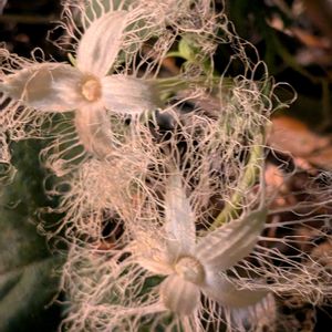 こんにちは🤗 今日も穏やかな秋晴れでしたね🍁🍂 今日のお花カラスウリ(烏瓜)❇️🤍💮🤍❇️ 今年の夏も夜な夜な人知れず、毎晩沢山咲き乱れていました✨😄