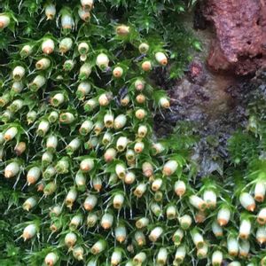 雨上がりの公園へコケ探しに!太くて背の高い老木にモフモフの深緑色の苔が全面に有りますね!まだらにベージュ色のポツポツがみえます。近づくとえーっ⁉︎ どれもクチを開けてるし何かを出しているみたい!そのpicです。拡大すると面白い🤣picに。 早速 コケ図鑑で❣️探すと… p68ページの ヒナノハイゴケ かな? 解説に ルージュをひいたような赤色の蒴のクチと蒴歯が現れる。とあるけれど 確信が持てないわ⁉︎ 恐れ入りますが この苔の名前を教えていただきたいです。よろしくお願いします☺️ 教えていただきました❣️ ヒナノハイゴケ で正解でした☺️ ありがとうございました。