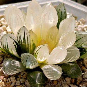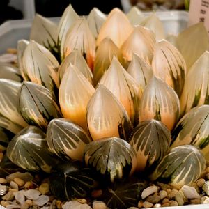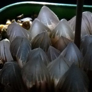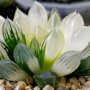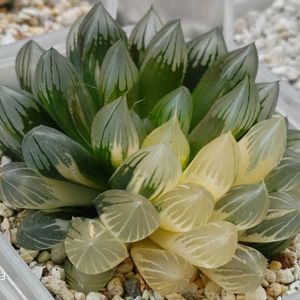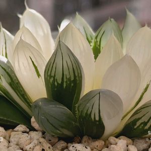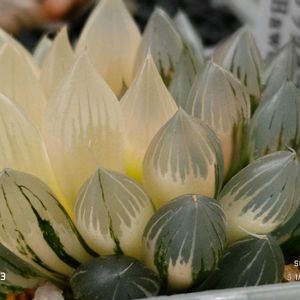 ●ススキノキ科 ツルボラン亜科 ●ハオルチア属 ●ブラックオブツーサ錦😻😻 この白葉は👻オバケ葉なのか…🤔😅 👻オバケ葉って、黄色じゃないの🤔? でも、👻オバケ葉だよね…😭