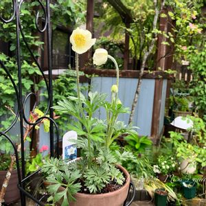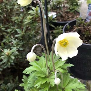 原種アネモネ✨シルベストリス 昨年花友さんからいただいた時の、どんどん増えるよーとのお言葉に怖気づいて、鉢植えにしてあります😆 銀色の可愛いツボミ✨お花もとても可愛いですよ♡ 🏷金曜日の蕾たち