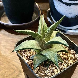 アガベ以外の、自分の多肉たち。 ハオルチアの寄せ植えは、叔母が育てているものからの株分け。 鉢は陶器製のコーヒーフィルターです。 他にはエケベリア、ヴェノーサ、品種不明のハオルチア、ヴェノーサの植え替え時に生えていた、多肉っぽいナニカ。 春になったら、寄せ植えは植え替えたいなあ。 最後の写真は、名札を作り変えたので 記念に撮影しました。