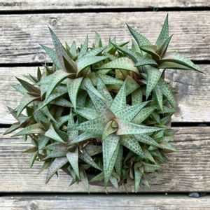 こんにちは☀️ 〔ハオルチアと言えば〕的な、ハオルチアを集めてみました。(私個人の感覚です) 左上から時計回りに 青雲の舞 ※私の初ハオルチア オブツーサ 十二の巻 ヴェノーサ ピリフェラ錦 宝草錦 ヴェノーサより竜鱗、宝草錦より宝草かなーと思ったのですが、ここに並んでいる鉢に対して高さが合わず😅
