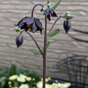 オダマキ ブラックバロー 今年はお花が小さめカモ😄 バックに黄色いマーガレットを従えて