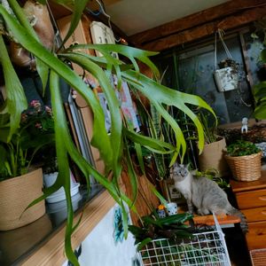 今日のお花 ビカクシダ(コウモリラン)🦇 (*˘︶˘*).。*♡ シロ。とコラボ😸