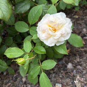 秋の薔薇咲いてました…🤍 バニラ色で美味しそう〜🍦 恵庭道の駅はなふるガーデンにて…