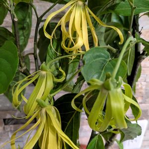 💛イランイランノキ💛 花の色が大分黄色くなって来ました(•ө•)♡ 花の中の花と言われ、花から抽出される精油が様々な香水、アロマオイル、アロマセラピーに使用されるそうです。 マリリンモンローが愛したシャネルの5番にも使われているとか。。 勿論他の香水にも沢山使われています。 ホルモン作用の調整にも使われるそうです。 緑色だった花が黄色くなると強い匂いを放つ様になります。。 今はまだそこまで強い香りは有りませんが。。。。