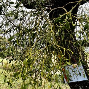 木曜日は木の日🌲 1️⃣ヤドリギ(宿生木)(寄生木)(宿り木) ビャクダン科 ヤドリギ属 枝垂れ桜の木に寄生したヤドリギ (雄木) 雌雄異株 ヤドリギは樹木の上の方に丸く鳥の巣のような形状で寄生する半寄生植物 半分は宿主の樹から水分と栄養をもらうが、半分は自分で光合成をする植物 鳥が食べた(冬はキレンジャクやヒヨドリなど)雌株の未消化の粘着生の種が木の皮についてそこから寄生する ここでは木の幹から垂れ下がっていました 葉は双葉のような形で葉柄はなく、枝から対に生えています 分厚く、細長く先が丸い形 2️⃣3️⃣カツラ(桂) 別名 醤油の木、香の木 別の場所でいち早く撮った紅葉の葉 ハート型❤️ 桂の紅葉は樹木の中でも早く、落葉🍂は醤油のこげたような、メープルシロップ、砂糖の焦げたような良い香りがします マルトールという成分 沢山拾って帰りました 4️⃣5️⃣コウヤマキ(高野槙) 日本固有種