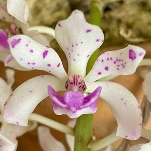 Rhy. gigantea ‘White’ 原種の着生ラン 花;3x3cm 房;15cm 丈;10cm 根;120cm 昨年は植え替えしたので、花はお休みでしたが、今年はしっかり咲いてくれました。 余りにも長くなったので、扱いにくく、写真撮影も大変でした。