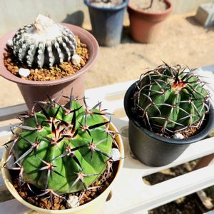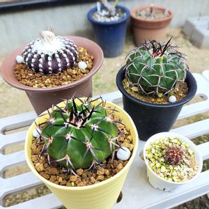 今朝のディスコカクタス達です ベコベコだった右上のギガンティアもすっかり膨らみ刺を伸ばしています 小株のギガンティアも生長しているようですがずっと真っ赤なままです