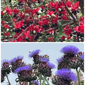 木場公園のお花たちを もう一枚 ブラックベリー🔴⚫️がたくさんなっていました♪ こんなにたくさんは初めてです😊 大きなアメリカフヨウ🩷❤️のお花は重そう アンティチョーク💜💚のお花も大きい💕 今日のpic