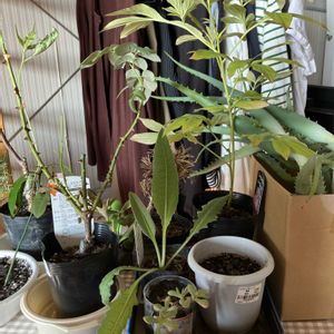 ①北斎錦さん、暖かくなって外管理にしたら赤が戻ってきました🙌 ②種を蒔いて2年目、葉っぱも迫力が出て花芽がつきました♪楽しみ😊