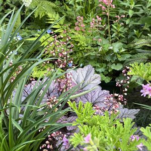 今日は一日中☔️ですかね〜 先月まで寂しかった花壇も、賑やかになってきました というのも シダ🌿が抜いても抜いても出てくるし、 ミソハギがひょこひょこ色んなところから顔出し、伸びてきてるし 植えてもいないタカサゴユリが今年もえらく元気な葉を伸ばしてるから🤣 ヒューケラの花もいい感じ😌 地味なトリトニア🧡も忘れないでねと言ってるような…