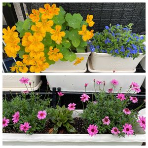 プランターの花、沢山咲いてきました☔️ ↑ナスタチウム、アメリカンブルー ↓ビジューマム ローズクォーツ、ルメックス