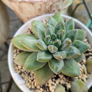リーモン(リエール苗)💕 形とぽわっとしたピンク色がかわいい😍 やや肉厚な葉も好み🥰 (A25の鉢がだいぶ汚い🫣💦)