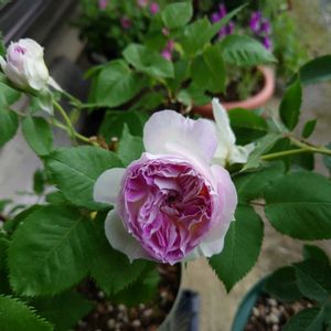 こんばんは( *´꒳`*)੭" 昨夜からお昼過ぎまでの強めの風雨で 我が家のお花は悲惨な事になっています😢 昨日postしたアルセアちゃん💗も倒れ 茎が根元から折れてしまいました😭💦 今日は昨日までに咲いていたブルー系💙のお花を集めました💜💙 ①ルシェルブルー💜 ふんわりとしたロゼット咲きの花が房で咲きます💜 名前はフランス語で「青い空」 耐病性は普通でタイプ2です😊 ②シャドーオブザムーン💜 名前は月の光に照らし出された人や物の姿を意味する言葉から。 花付き、花持ちが良く耐病性も強いタイプ0です😀 ③ブルームーンストーン💜 グリーンがかったクリーム色の蕾が開くと紫ピンクに染まった花びらが現れる不思議な魅力を持つバラ。優しく甘い香り。 耐病性は弱くタイプ3です😣 ④令の風 波状弁の花姿に、涼しげな風のイメージをかさねたバラです💜 耐病性は非常に強くタイプ0です😊 ⑤❁❀今日のお花✿✾ 💜💙💗アジサイ💗💙💜 ⬆️フェアリーマーブル💙💜 絞り模様が魅力です💜 ⬇️巴(ともえ)大輪のガク花が美しく華やかです💜 🏷美しく青きドヨウ💜💙 💜💎✯*・☪:.。💜💎✯*・☪:.。💜💎✯*・☪:.。💜💎✯*・☪:.。💜💎✯*・☪:.。💜💎✯*・☪:.。