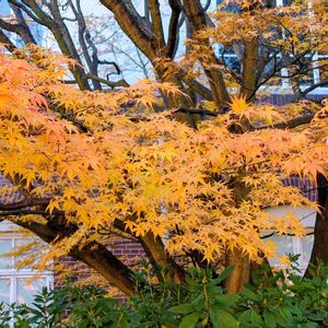 庭のもみじ🍁がようやく秋らしい色になりまして🧡 そこだけ別世界のようでほっこり☺️ もう片方のもみじはまだなんとも… 深緑の先が赤紫になって散るのかなぁ…🥺 ついでに… ブライダルシャワーの紅葉も記録として📸