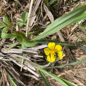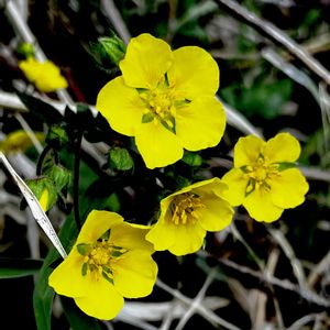 里山徘徊 5/1 角田山 ビタミン・イエロー・・・三昧、三枚、いや三種です。 ✌️✌️✌️😃😃😃✌️✌️✌️ ①② エチゴキジムシロ(越後雉子筵、越後雉筵)バラ科キジムシロ属の多年草。『日本海側山地に分布し、同属のキジムシロに似るので、「エチゴ(越後)キジムシロ」の名がある』(wiki) ③④ ウマノアシガタ(馬の足形)キンポウゲ科キンポウゲ属の多年草。別名キンポウゲ(金鳳花)はウマノアシガタの八重咲のものを指す。光沢の有る花弁がキラキラです。群生すると綺麗で派手。 ⑤ コウゾリナ(顔剃菜・剃刀菜・髪剃菜・顔剃り菜)キク科コウゾリナ属の越年草または多年草。蕾は毛が多く黒く見える。と思っていたら、県外遠征で緑色の蕾に出会った事が有ります。スッゲ〜、びっくりしました。 ✌️✌️✌️😃😃😃✌️✌️✌️ このカメラ、黄色い花も、苦手ですネ〜。潰れて見える。質感が出ない。ヒントが合いにくい・・・等々、まだ、上手く使えてないナ〜。