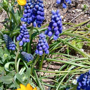 おはようございます。 🏷️美しき青きドヨウ! 庭植えのムスカリさん、咲き始めました。😊 モミジの木の下のおきな草さんと、ヒアシンスさんです。 昨日の夜、凄い雷⚡がありました。毎日、風🍃と戦っている植物さんに、(ㅅ ॑꒳ ॑*)感謝♡してま〜す。( * ॑˘ ॑* )ᑑԽᑑԽ🐱🐾