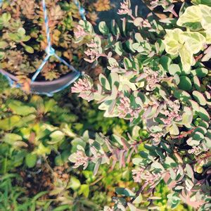 ミセバヤ、ちょっとピンク。まだ朝寒いからですかね〜。 2枚目は、葉の違い色々で面白いかと思いまして📷。 ディアボロは鉢のまま設置