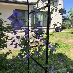 いやぁ暑いね もう30℃越え💦 薔薇もひとまず1回目の開花が終わり午前中にせっせと花を落とす作業 で寂しくなったうちの今の庭 まあ代わりに咲き始めたのが、クレマチスのミケリテ。もっとパープルが強いはずなんだが… その向かいにあるブルームーンも遅ればせながら開花 次々に花が咲いてきたのが今年買った岳の夢。写真ではわかりづらいけど、花弁の外側が白。たくさん咲くみたい。エキナセアも咲き始めたけど暑いのでまた後日