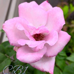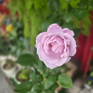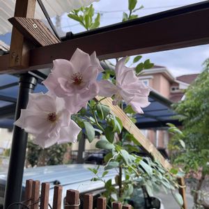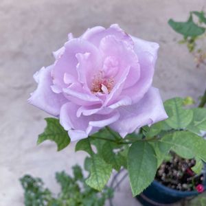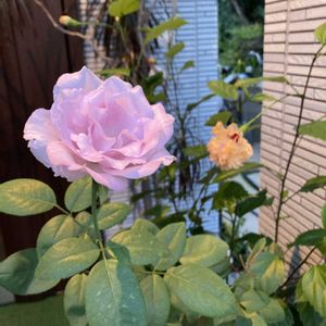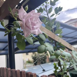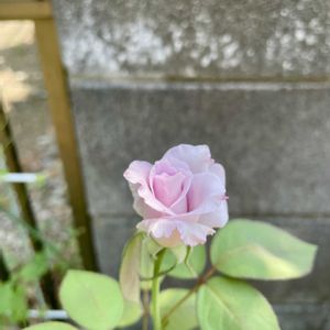 バラ ブルームーン💜 ブルーローズだけど、酷暑の中、直射日光を避け、軒下の奥に置いたら、なんとか縮れず 2番花が咲いてくれました…でも、淡いピンクで弱々しいかな😥