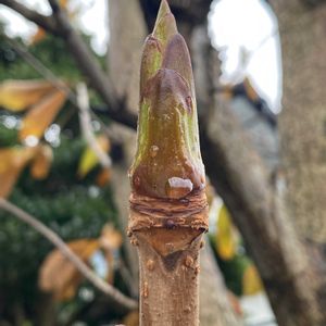 「トチノキ」 栃ノ木 冬芽?の先に樹液 今年、花を探したがダメだった💦