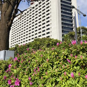 雨上がりの晴れた朝。 桜田門交差点の「ツツジ」が朝陽を浴びて輝いていて、気持ちよかった。