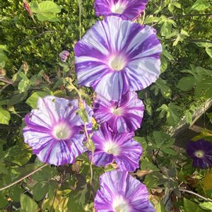 3つの鉢を並べて置いたら蔦が絡まってしまいました🌀💦 朝6時の空 白鷺さんの群れが飛んで行きました🎶