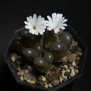 こんばんは😄 毎日37度超えだとしっかり休んで体力回復した身体にも流石に疲れが溜まってきました😓 明日も暑いらしい🫠🫠🫠 コノフィツム ペルシダムパルディカラー❣️ お休みの間部屋がずっとエアコンで快適だったらしくいつの間にか脱皮してお花が咲いちゃった🤣 真っ白でとても綺麗なお花です ペルシダムの中でもこのパルディカラーは透明な窓が特徴です 綺麗だ〜🤩