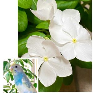 こんばんは♪ 昨日今日と少し気温は落ち着きましたが相変わらず蒸し暑かったですね💦 真っ白なニチニチソウさんが元気です♡ 以前の台風の時に玄関内で撮ったものです。 セキセイインコのきいちゃんは夏に羽が生え揃い部屋を飛び回っています🦜 好奇心もだんだん出てきていたずらっ子に‼️ 可愛いんですけどね😍 今日の敬老の日に私の母に会いに行きました。娘と娘の赤ちゃんと一緒に。。 母は娘の赤ちゃんと初めましてでしたが泣くこともなく、ひいおばあちゃんとひ孫がまじまじと見つめ合ってる姿に私と娘はジーン💧 とてもいい日になりました😊🫶💕 🏷️毎月15日はインコの日