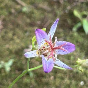 筑波実験植物園のタイワンホトトギス。 タイワンホトトギスも色々ですね。筑波実験植物園の花は、茎も葉も花も繊細な感じ。ほんのり青紫色の花びらです。