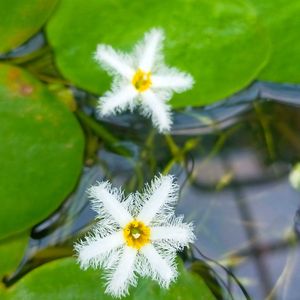 筑波実験植物園の温室の一つに「ガガブタ」が、ふわふわと可憐な咲き姿 がさつ(失礼)な響き…と思ったら、豚は関係なく、「鏡蓋」とのこと、綺麗な名前!💎 2025/11/4